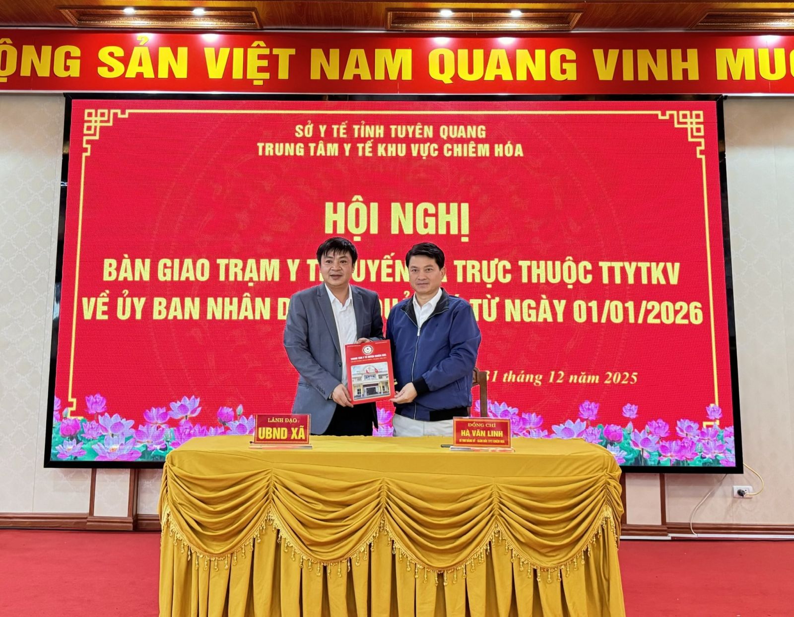 Thực hiện chủ trương sắp xếp, kiện toàn tổ chức hệ thống y tế cơ sở, sáng ngày 31/12/2025, Trung tâm Y tế khu vực Chiêm Hóa đã tổ chức Hội nghị bàn giao các Trạm Y tế xã, Phòng khám đa khoa khu vực thuộc Sở Y tế về Ủy ban nhân dân xã quản lý.